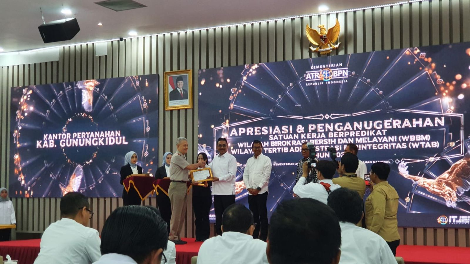 Kegiatan tersebut dihadiri oleh Sekretaris Jenderal Kementerian ATR/BPN Dalu Agung Darmawan, Kepala Kantor Wilayah BPN Daerah Istimewa Yogyakarta Sepyo Achanto, serta para pimpinan satuan kerja yang menerima predikat WBBM dan WTAB. Penghargaan bagi Kantor Pertanahan Kabupaten Gunungkidul diterima langsung oleh Kepala Kantor Pertanahan Kabupaten Gunungkidul, Supriyanta.