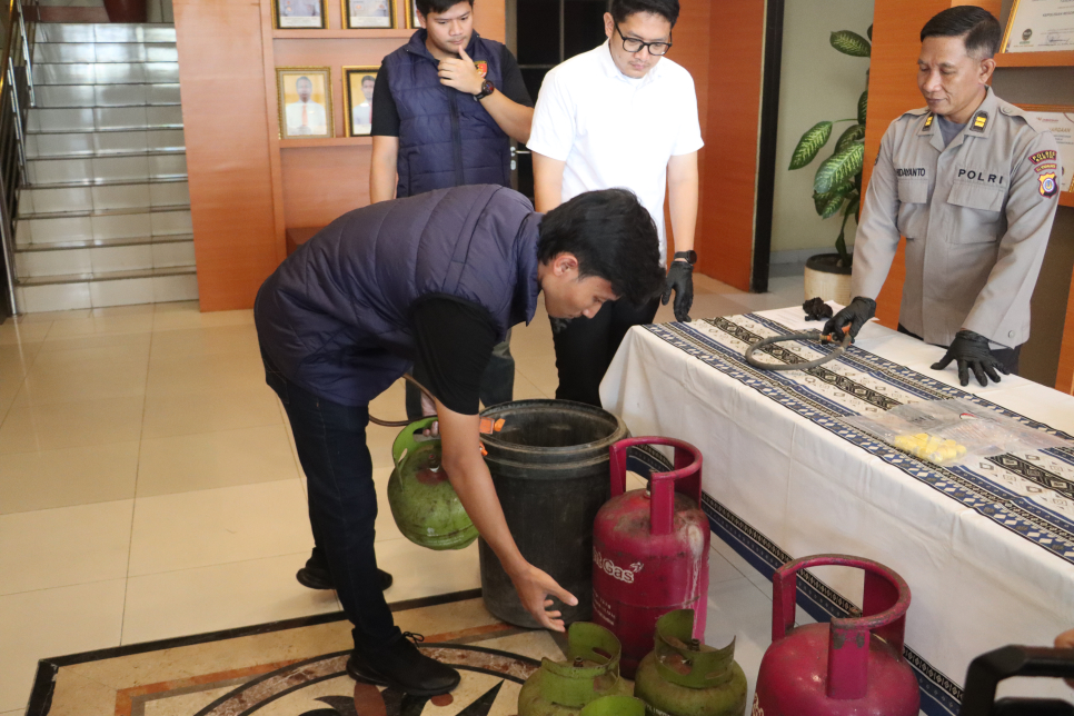 Dalam penggerebekan tersebut, polisi menyita sejumlah barang bukti, di antaranya 5 tabung gas warna pink (12 kg), 11 tabung gas melon (3 kg), 3 unit regulator yang digunakan untuk menyuntik gas, 5 ember warna hitam dan 1 unit sepeda motor dan keranjang (kronjot).