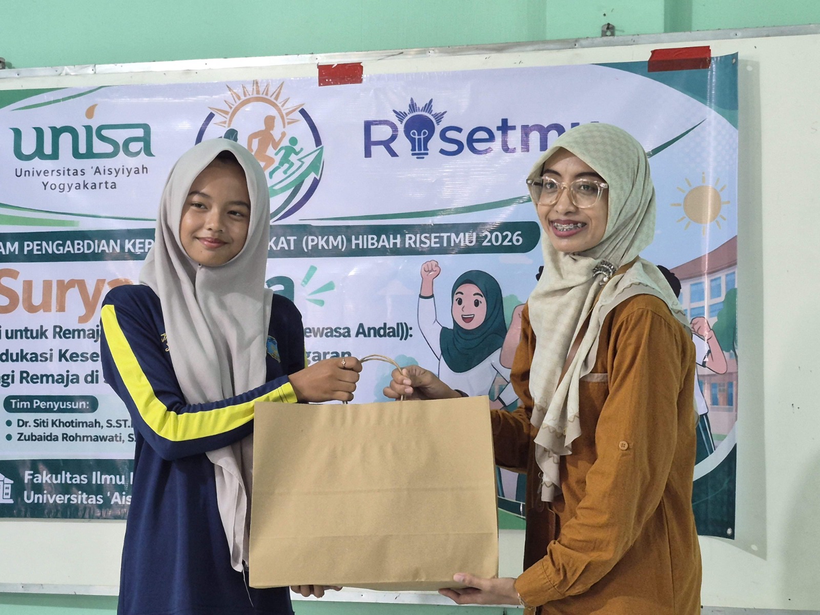 Presisi5. com || Yogyakarta — Universitas ‘Aisyiyah (UNISA) Yogyakarta melalui program Pengabdian kepada Masyarakat (PKM) Hibah RisetMu 2026 menyelenggarakan kegiatan SURYA MUDA (Sosialisasi untuk Remaja yang Aktif Menuju Usia Dewasa Andal) di SMP Muhammadiyah 1 Minggir pada 8 April 2026. Kegiatan ini menjadi salah satu upaya nyata dalam meningkatkan literasi kesehatan remaja sekaligus membangun kebiasaan hidup sehat berbasis sekolah. (10/04/26)
